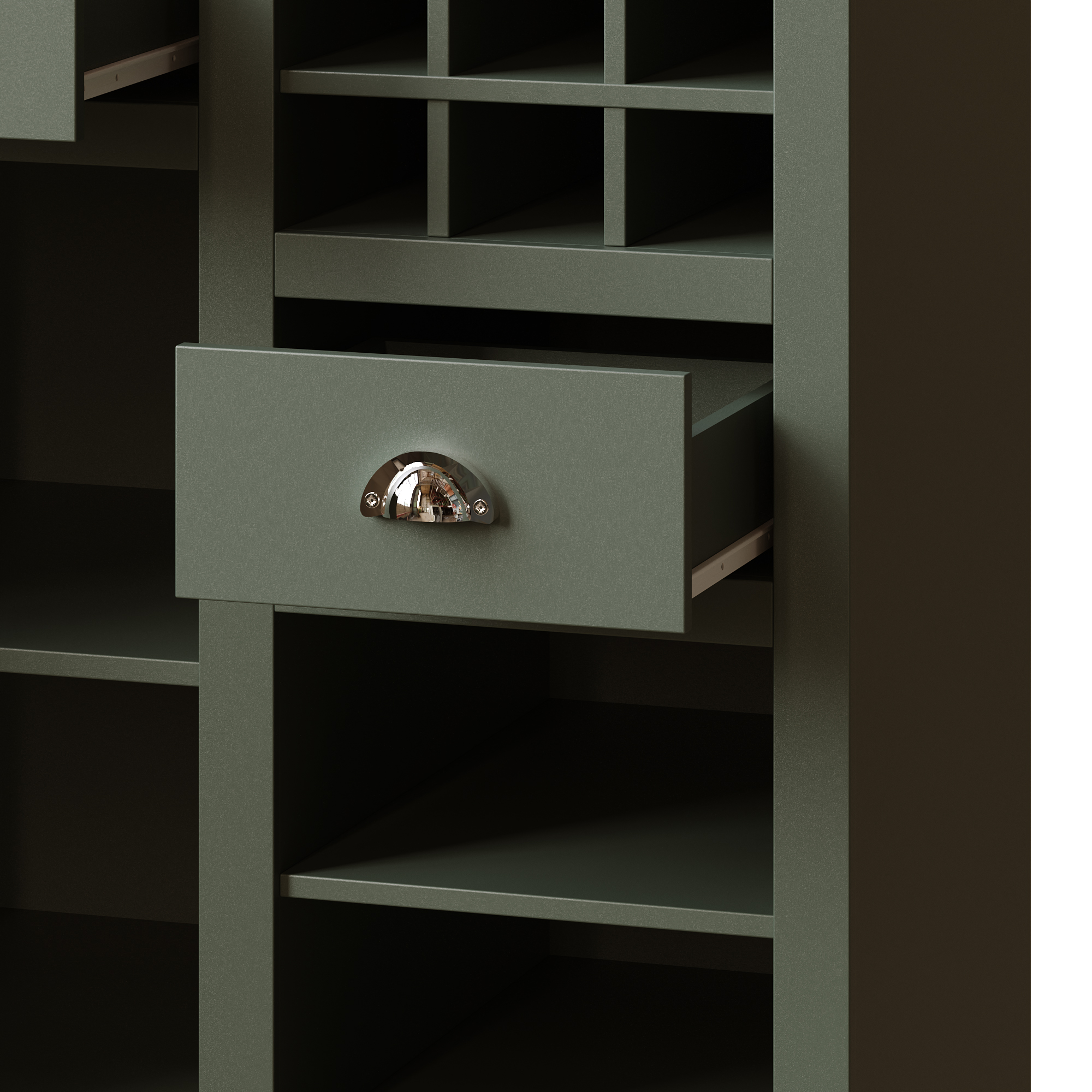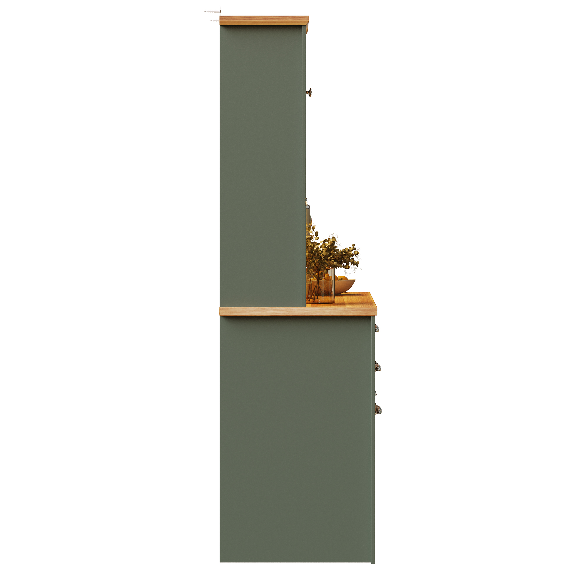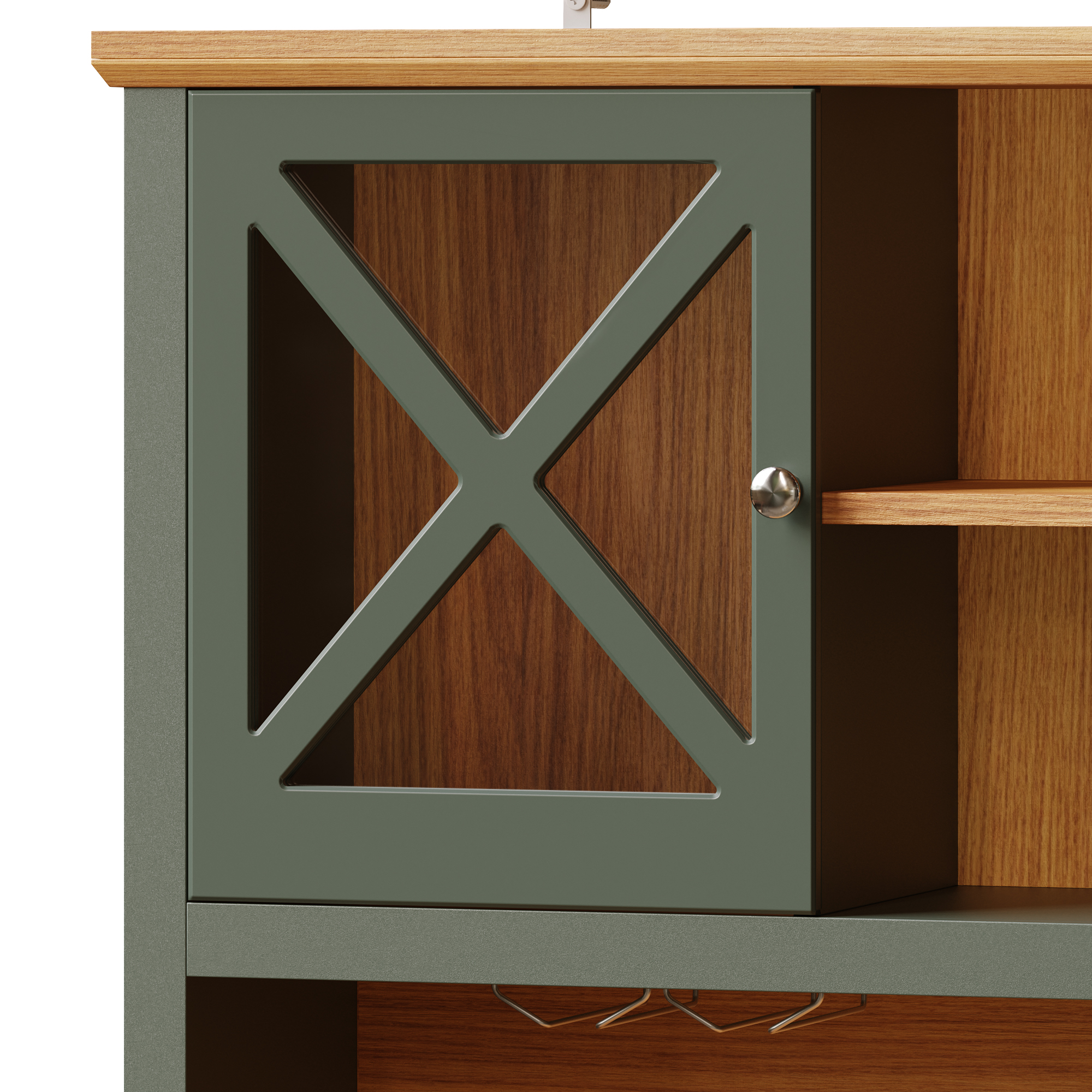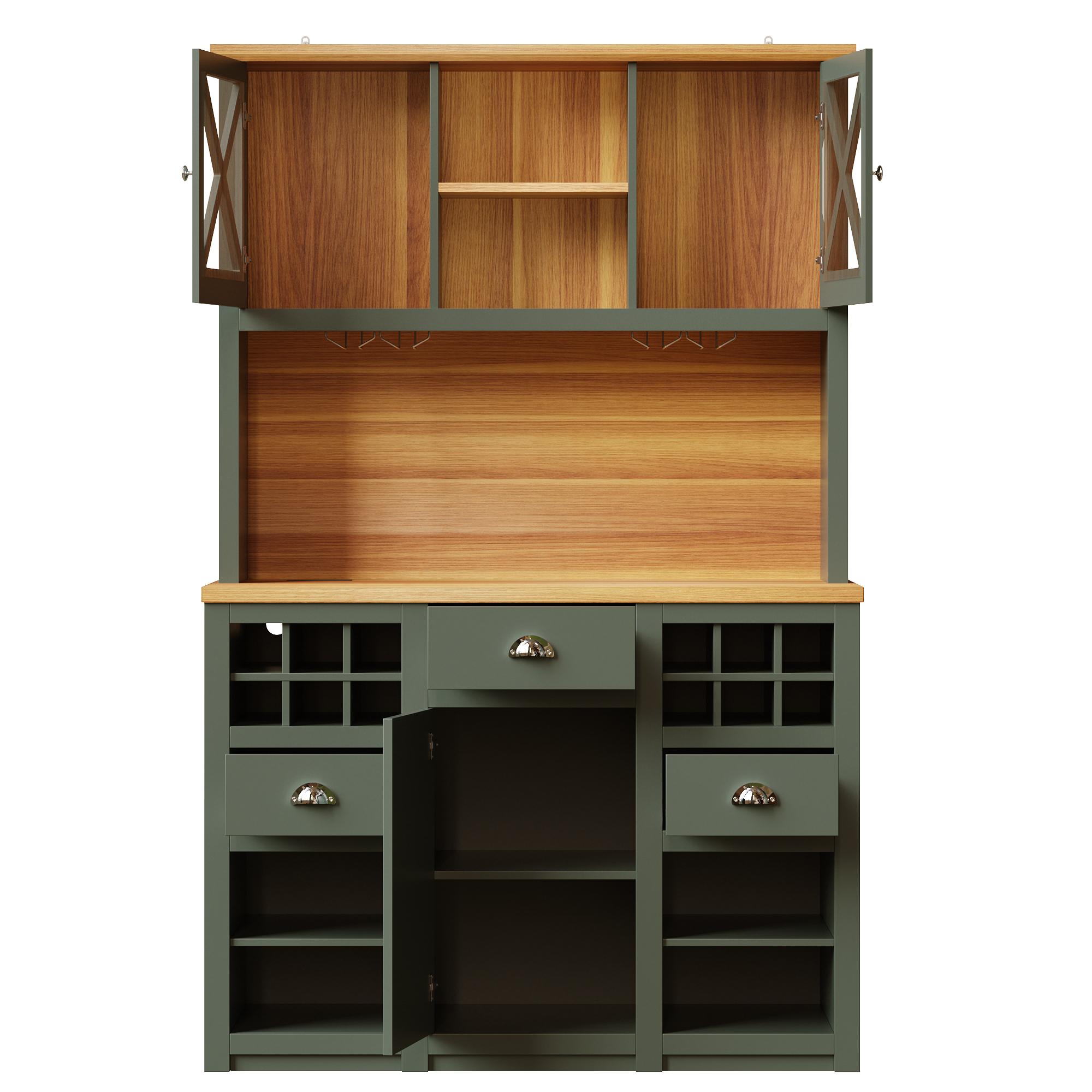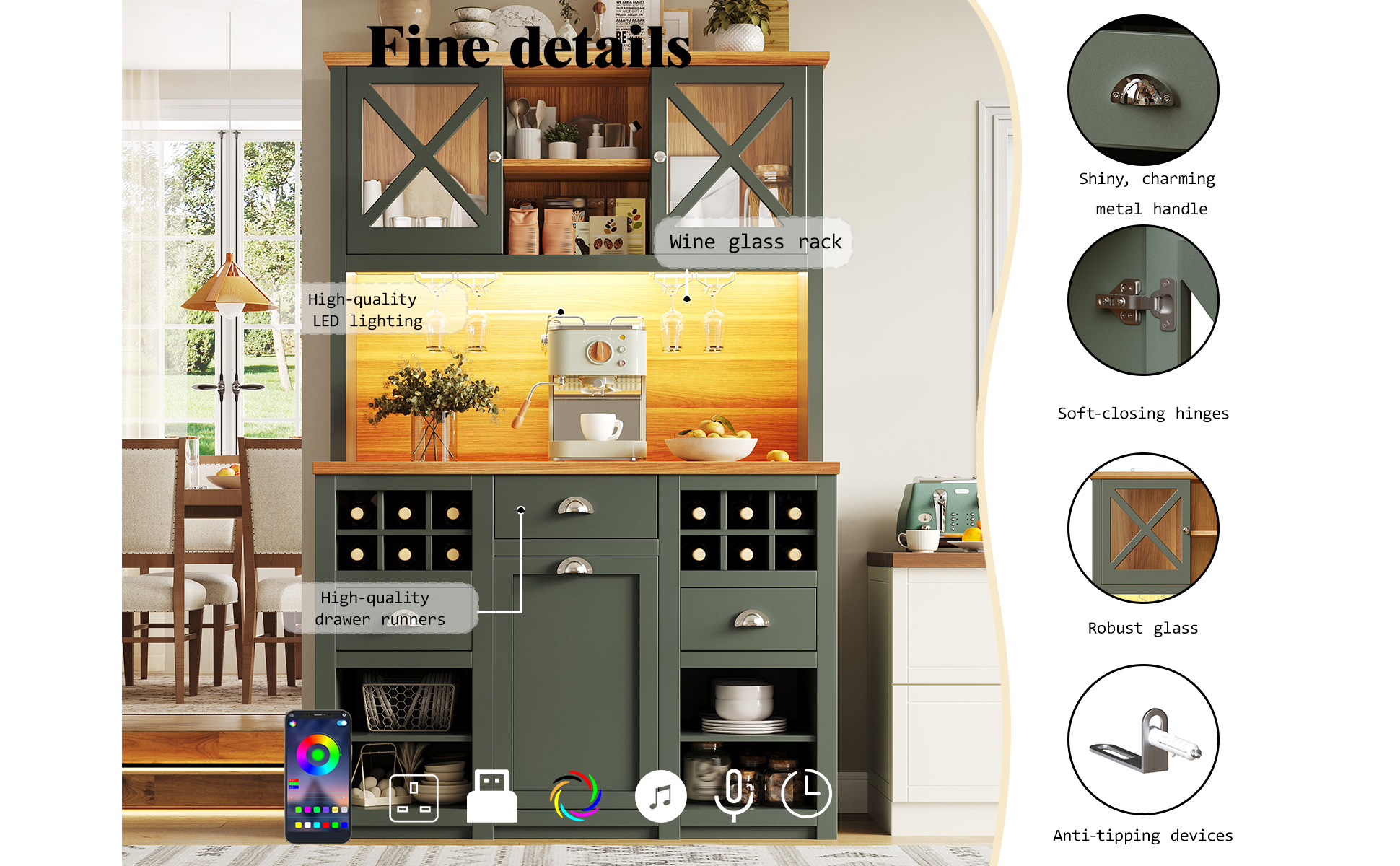 Kitchen Cabinets , Tall Kitchen Cabinets, Sideboards, Kitchen Cabinets With Glass Doors And LED Lighting, Side Cabinet With Wine Rack, Adjustable Shelves, Green