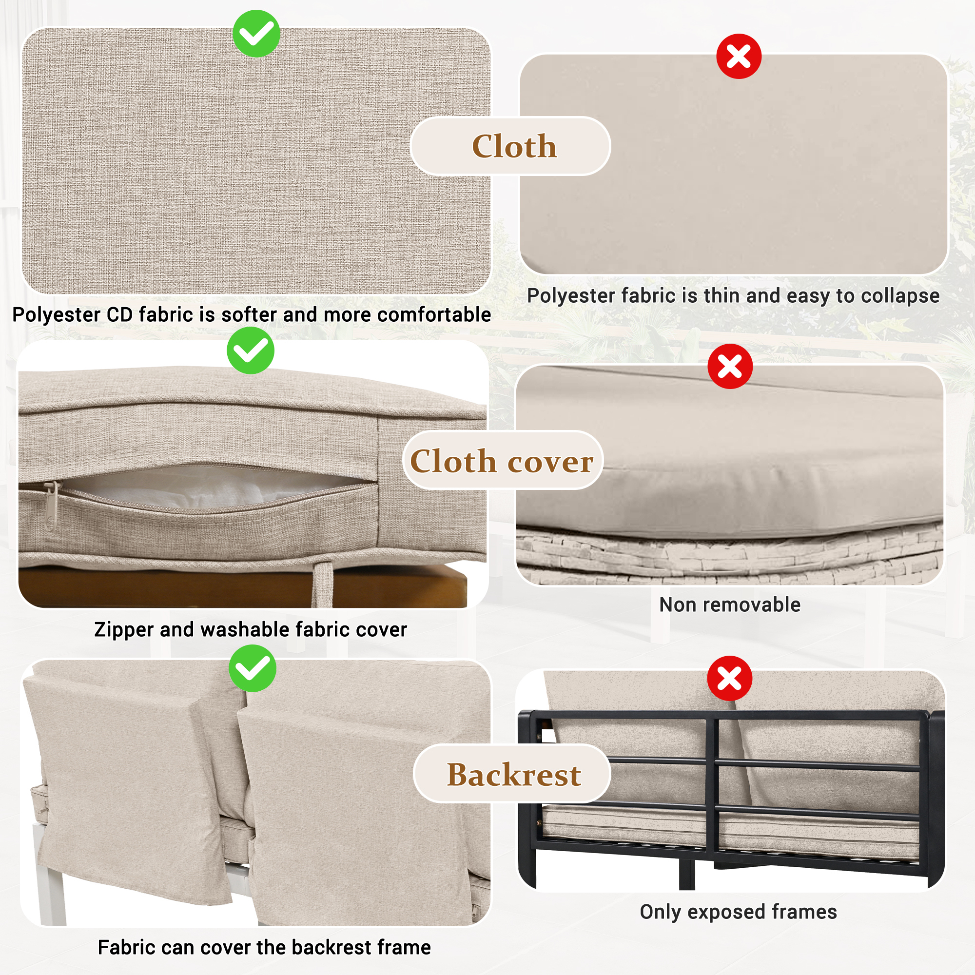 ·Ultra Comfort With Super Thick Cushions Over 10cm thick cushions ensure that you will be relaxing or dining in total comfort.Beige cushions included on the mixed natural set, and a beige colour on the Beige Set, make the set look great as well as providing a comfortable, relaxing experience. ·Multi-purpose Use You can make it turn out the way you want it to, like having tea time,holding business talk, hosting friends union, enjoying movie time and so on...