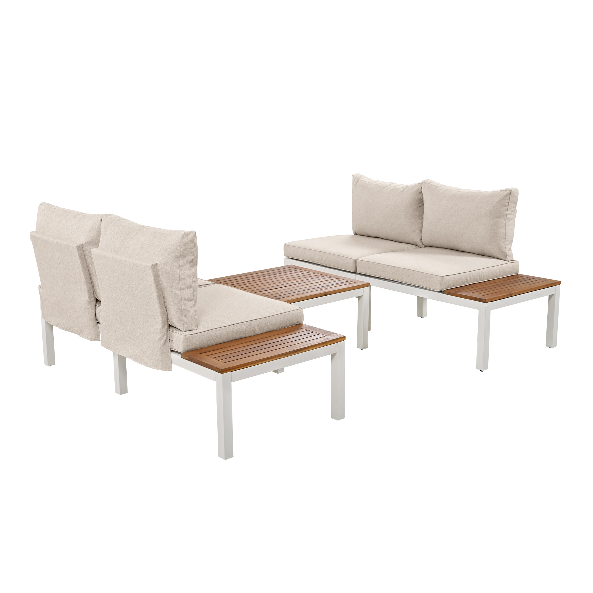 Outdoor Patio & Backyard Furniture Garden Lounge Set For 4 People, Space Saving Thick Quality L-Shaped Corner Sofa With Wooden Table, Beige