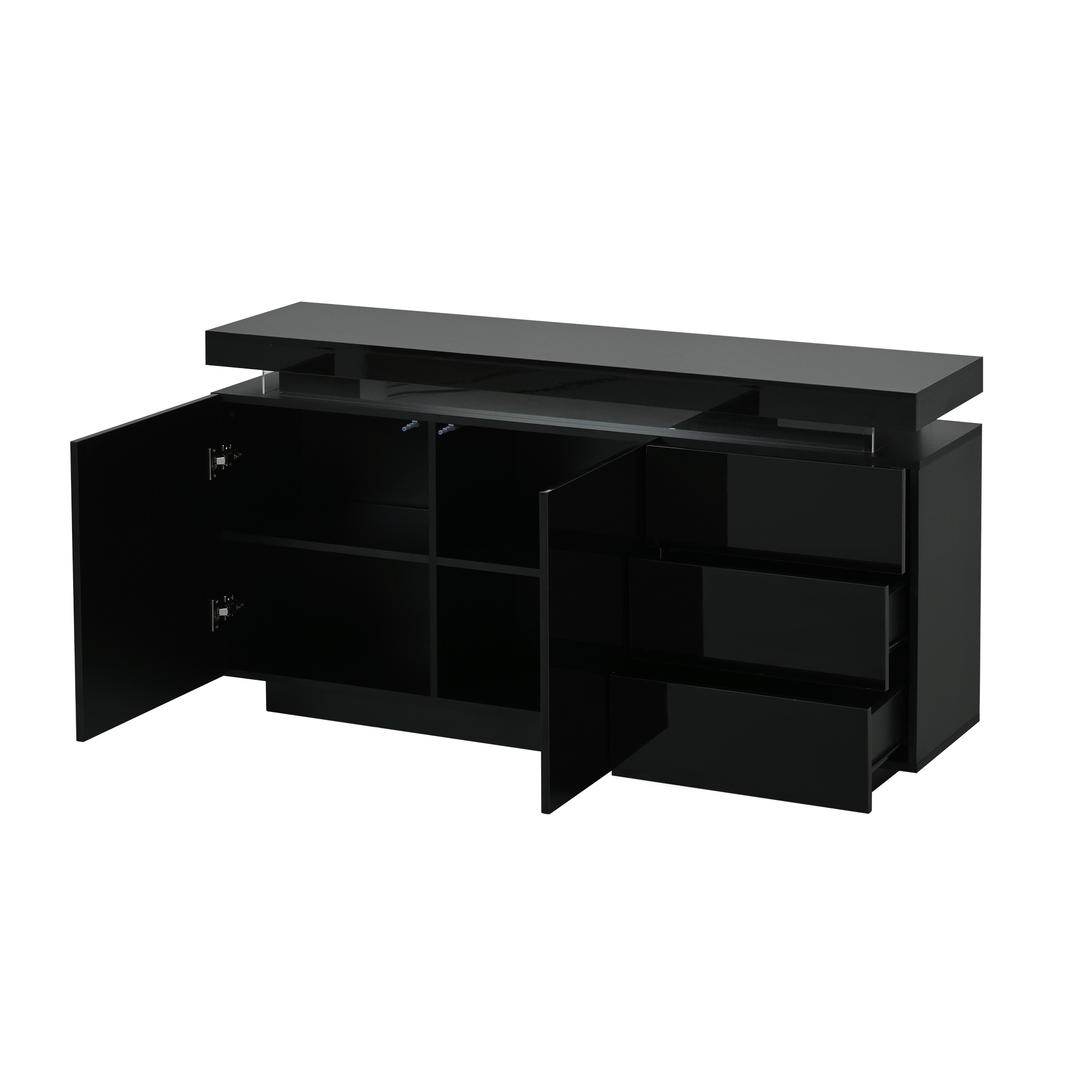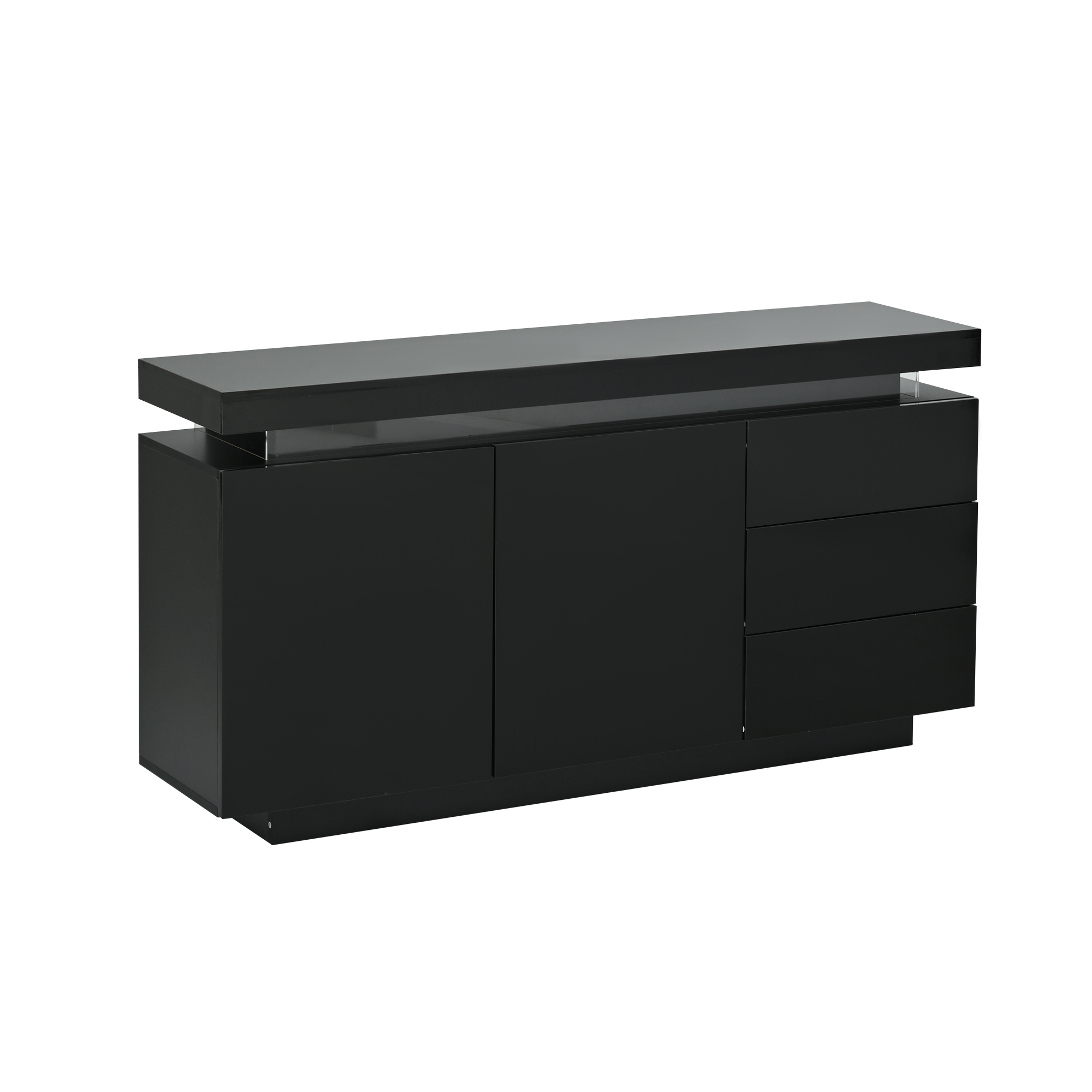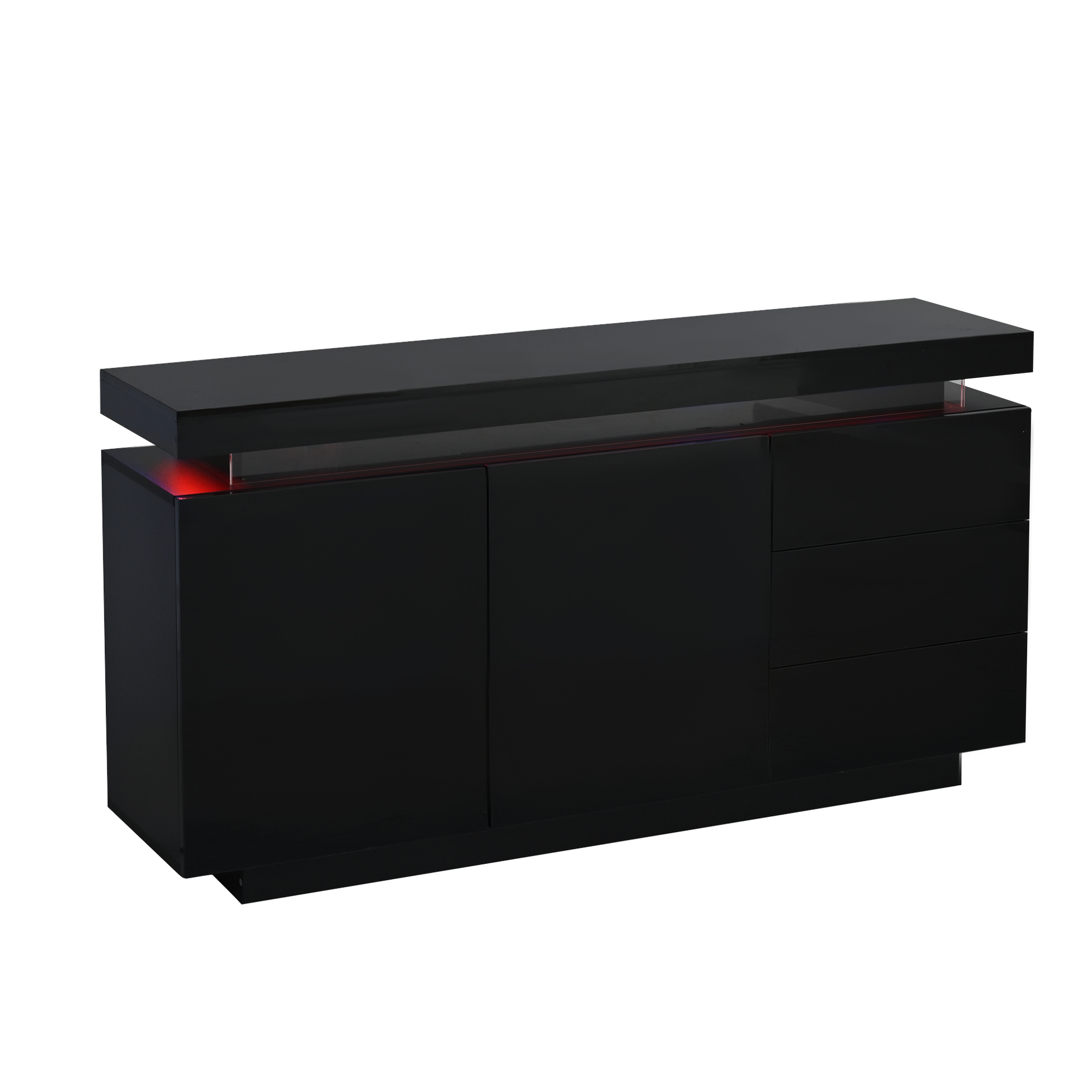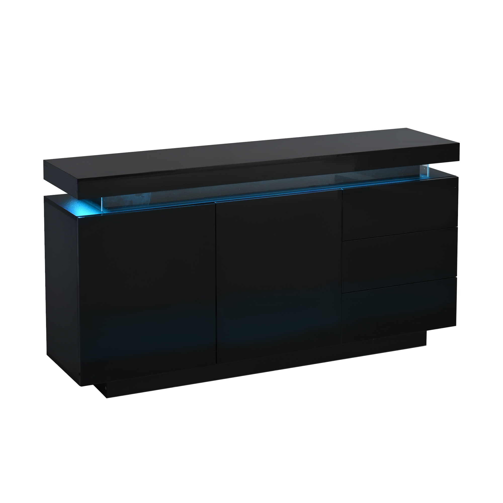 Sideboard With LED Lights, Side Cabinet Standing Cabinet Chest Of Drawers Highboard Sideboard With 2 Doors & 3 Drawers, High Gloss Sideboard For Living Room Dining Room, Black