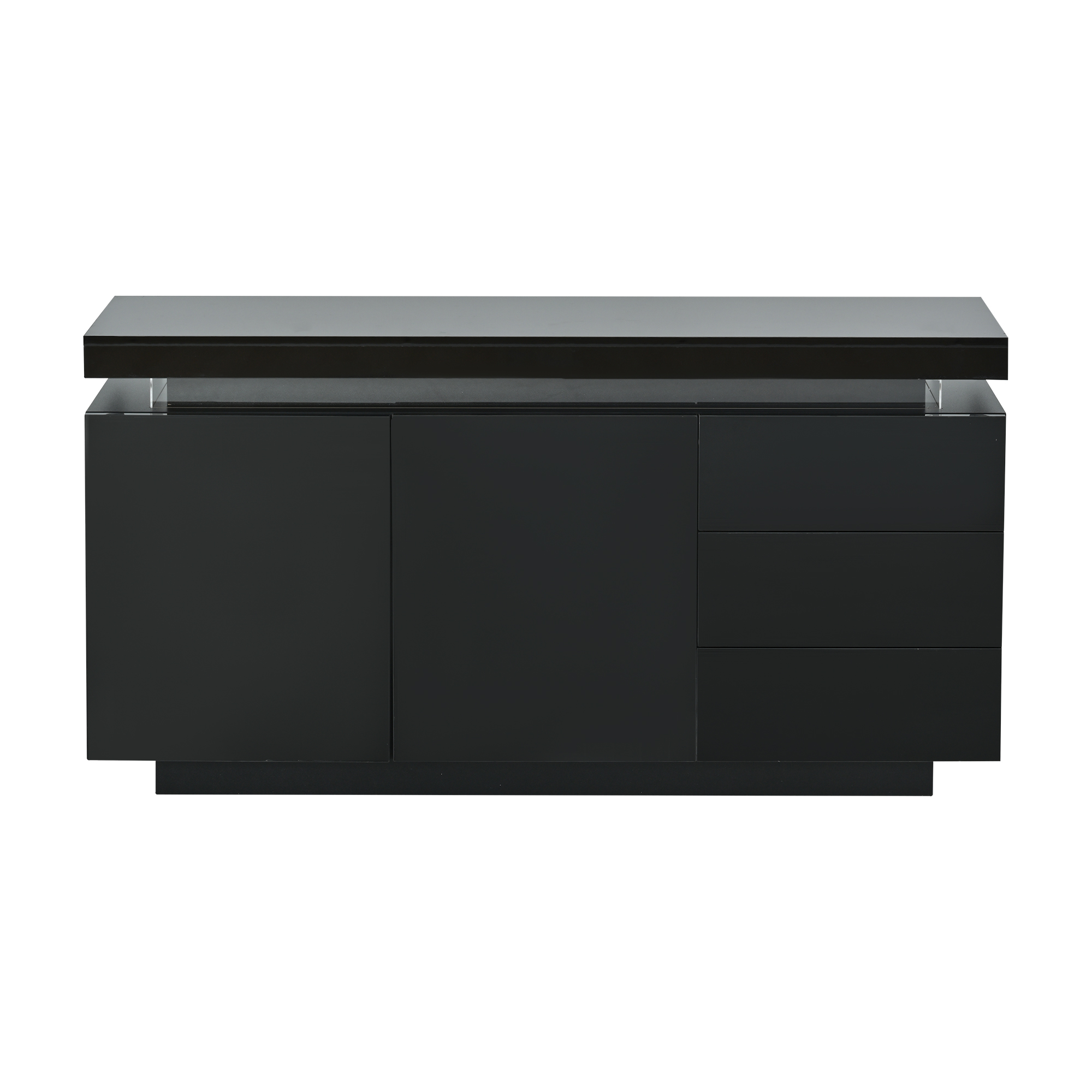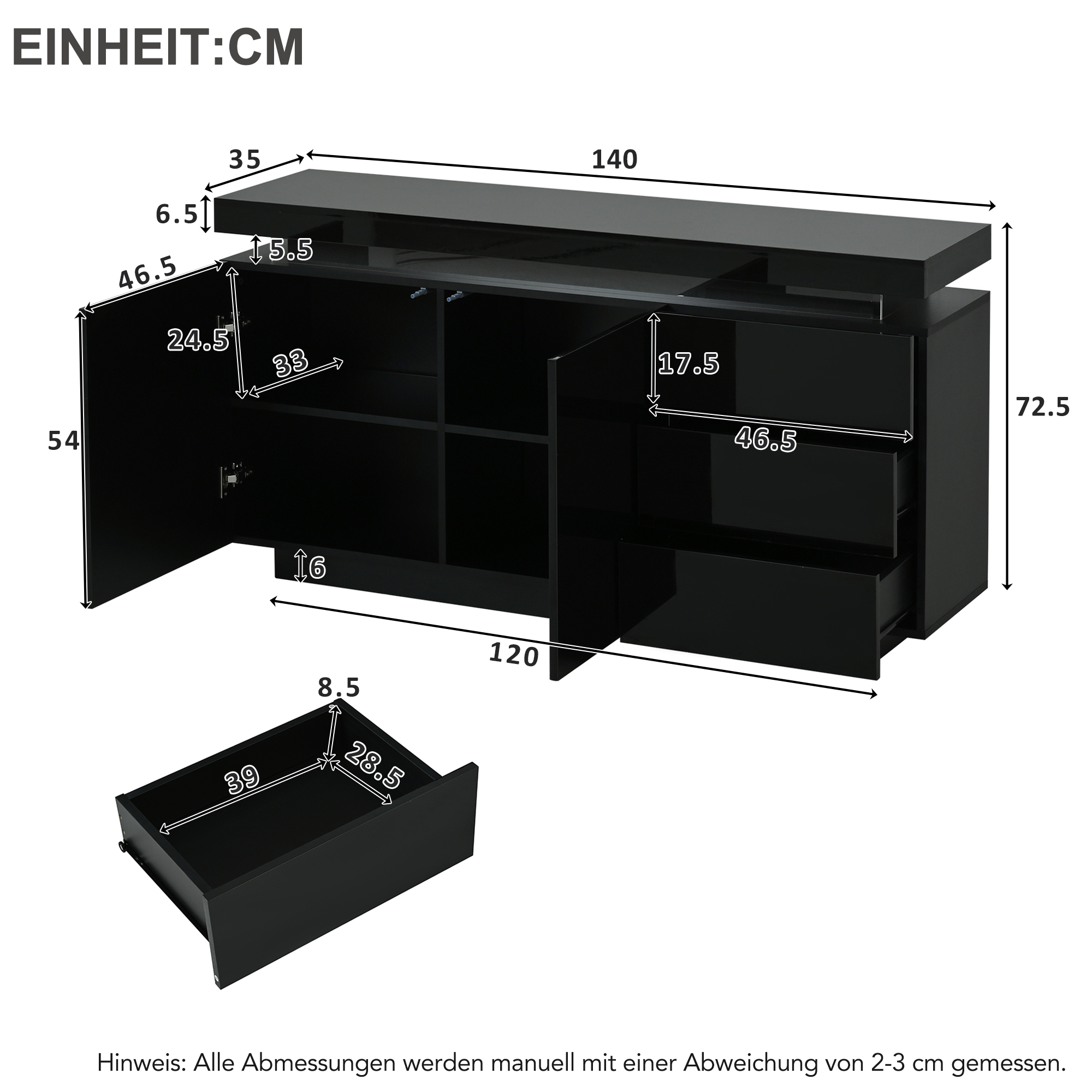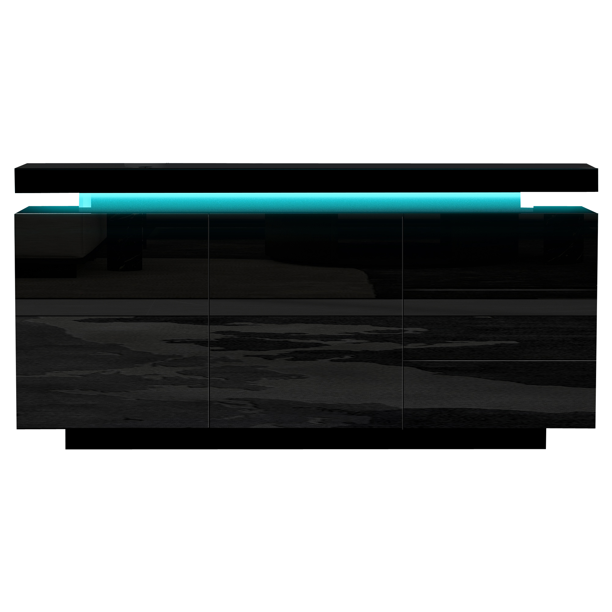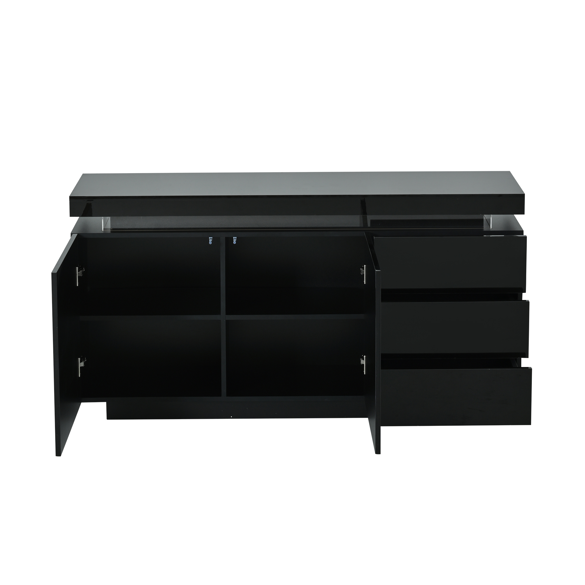 Sideboard With LED Lights, Side Cabinet Standing Cabinet Chest Of Drawers Highboard Sideboard With 2 Doors & 3 Drawers, High Gloss Sideboard For Living Room Dining Room, Black
