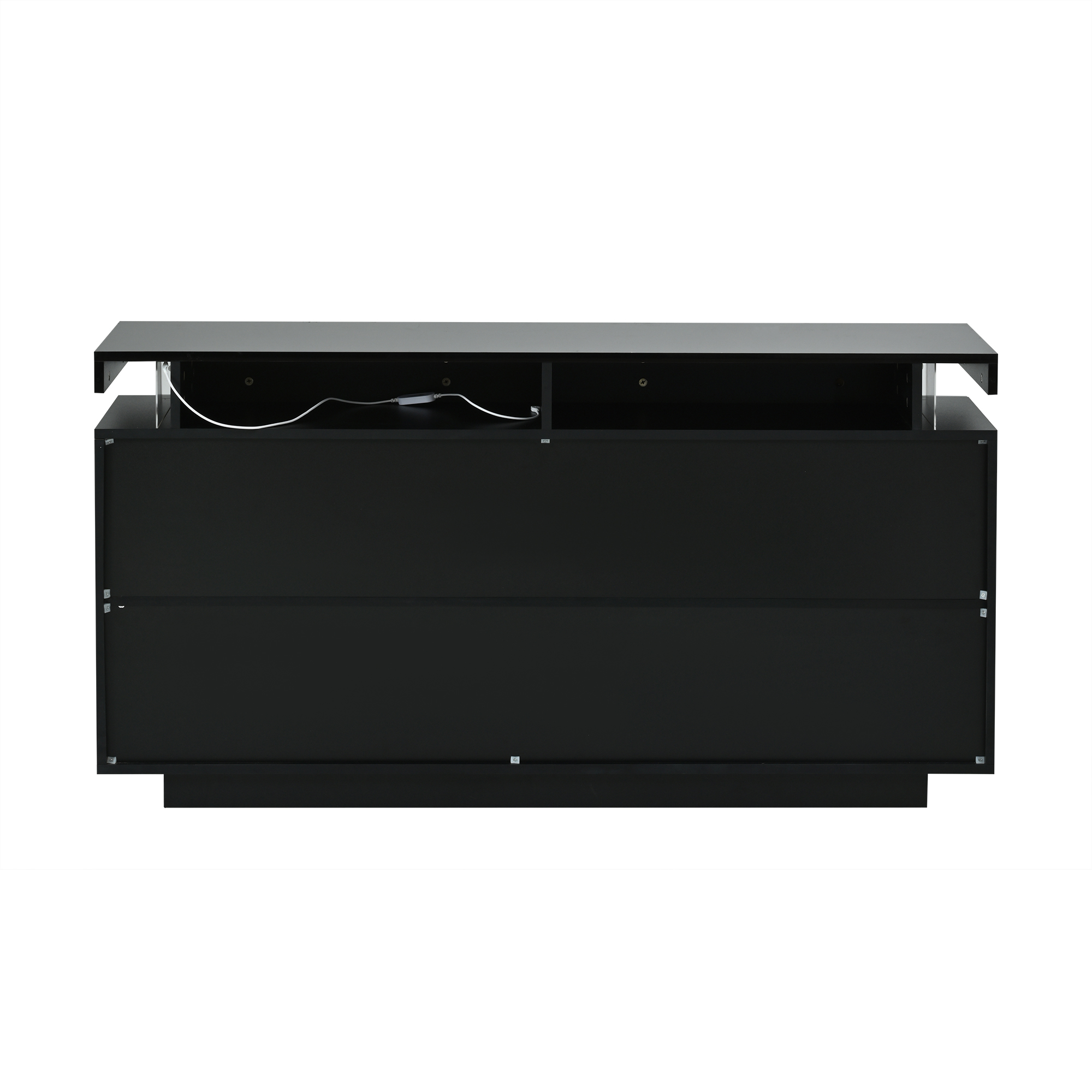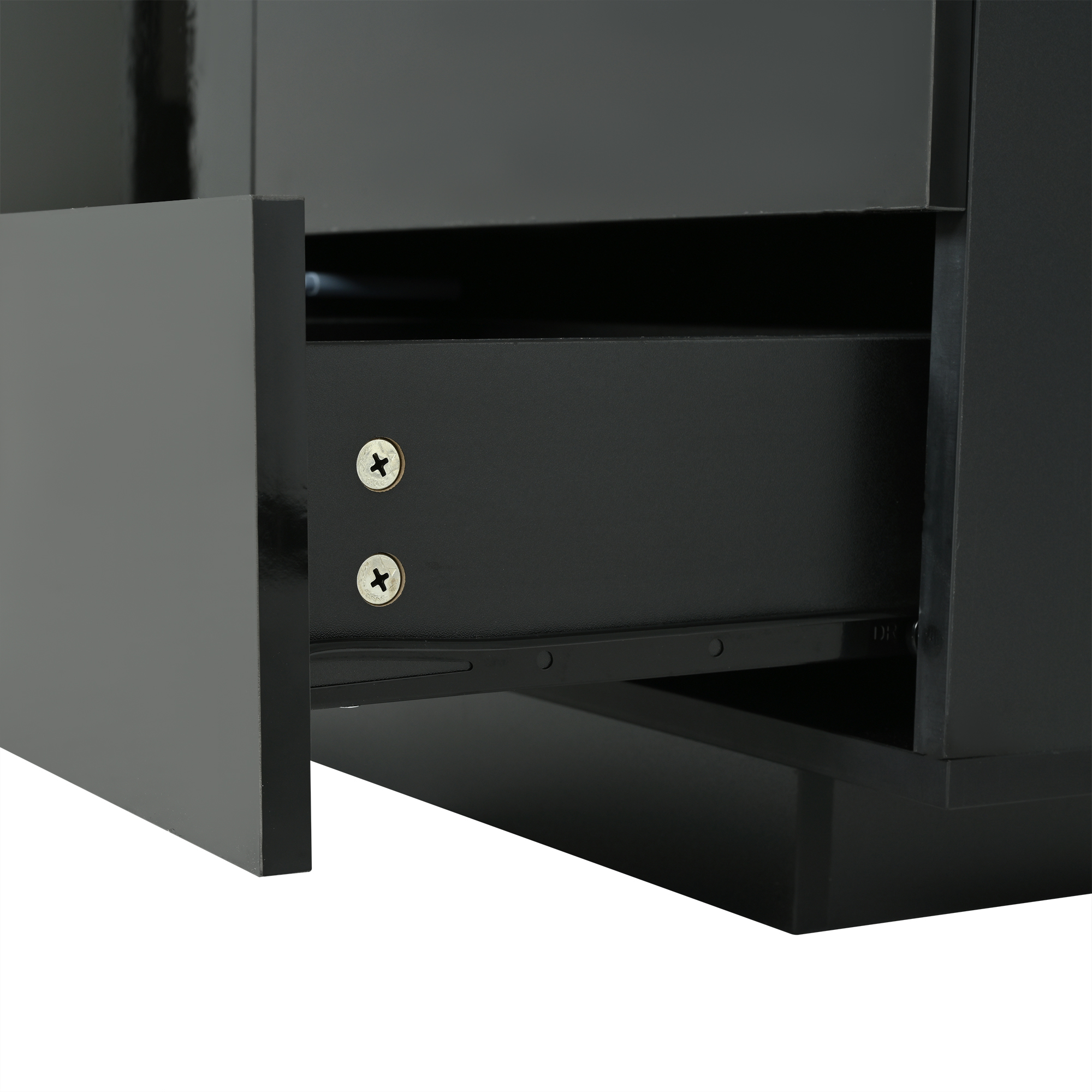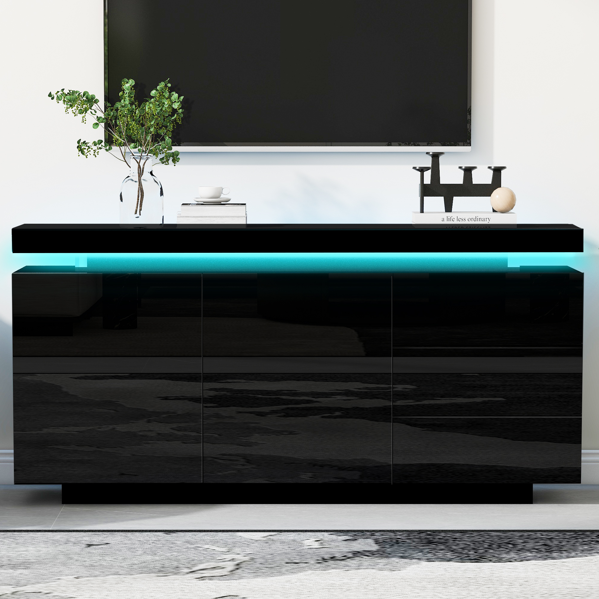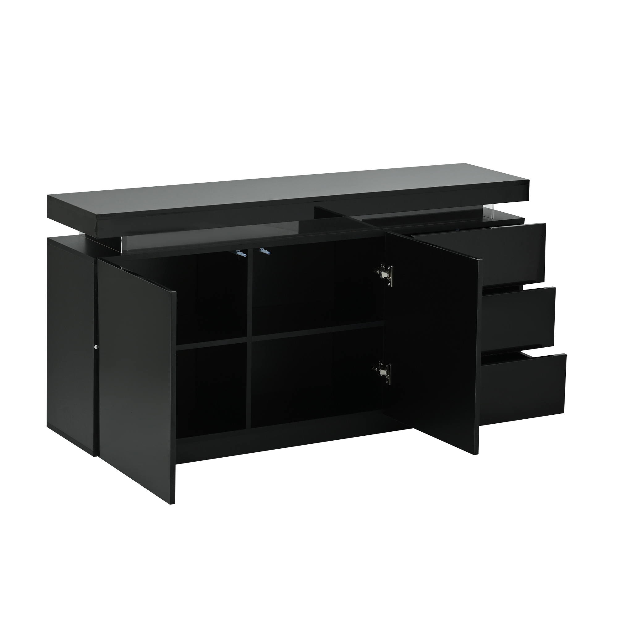 Sideboard With LED Lights, Side Cabinet Standing Cabinet Chest Of Drawers Highboard Sideboard With 2 Doors & 3 Drawers, High Gloss Sideboard For Living Room Dining Room, Black