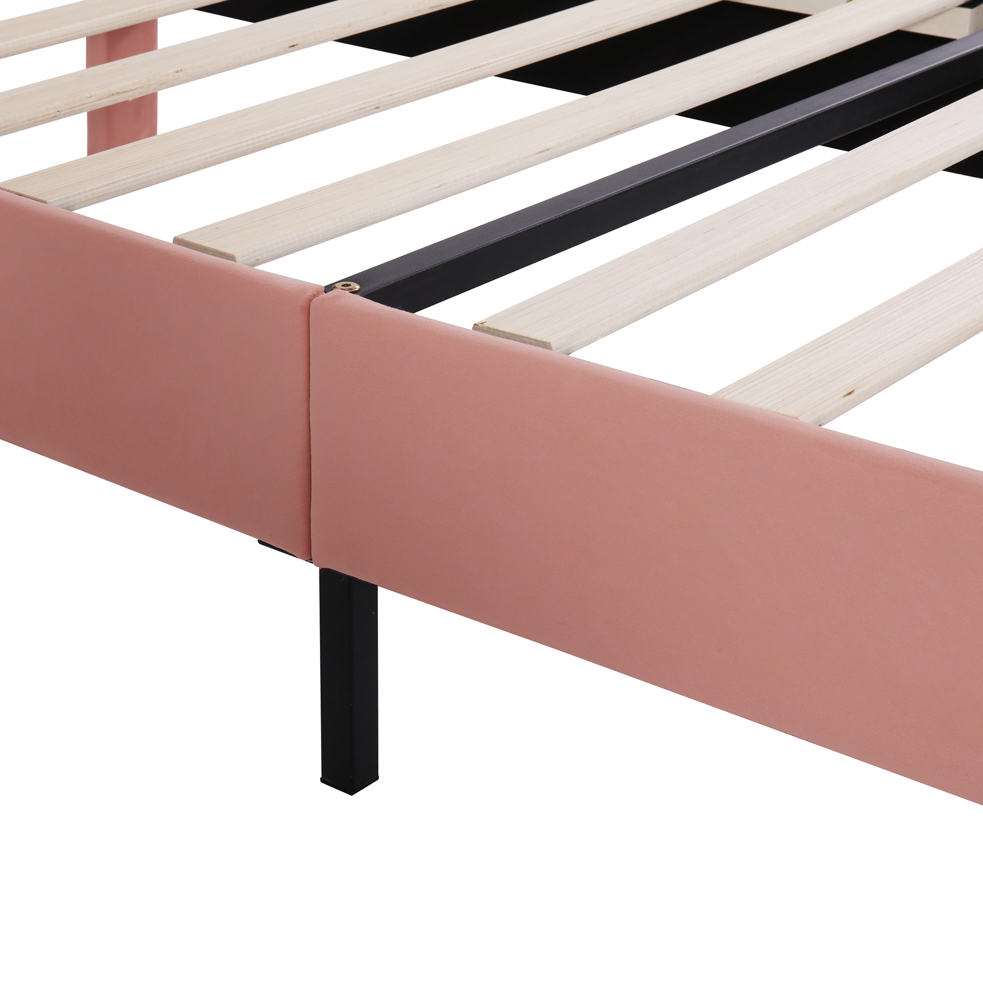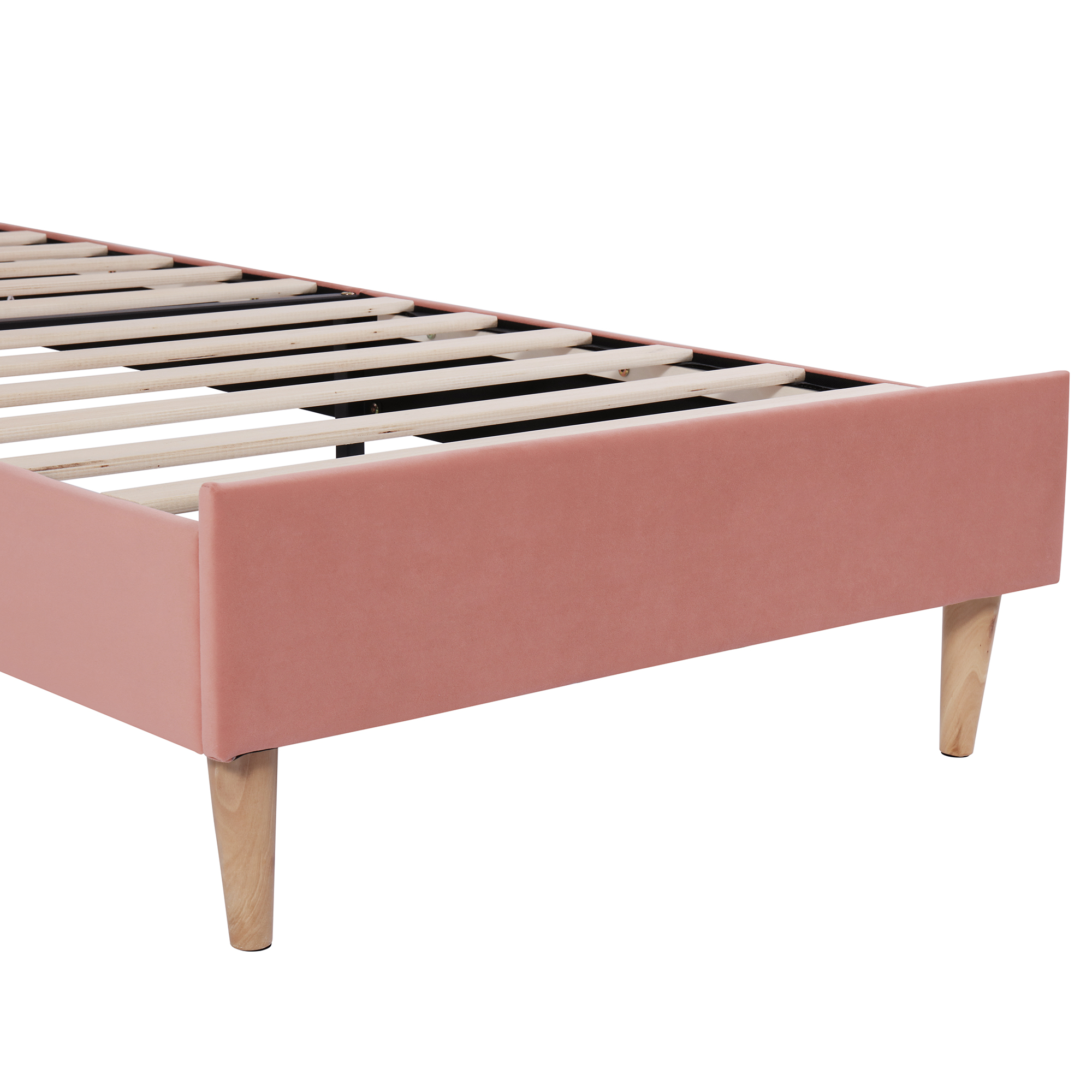 Upholstered Bed, With Slatted Frame And Headboard, Youth Bed, For Adults & Teenagers, Wooden Slat Support, Easy Assembly, Height-adjustable Headboard, Velvet, Pink